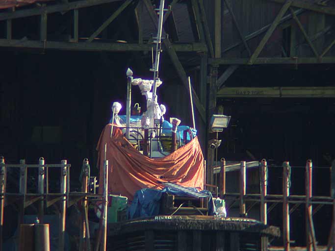 A tug in the drydock across the river from me.