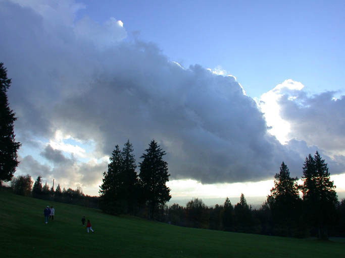 This is a composite of two photos taken one after the other, with different exposures. The longer-exposure picture donated the foreground, and the shorter-exposure one donated the trees and sky. |