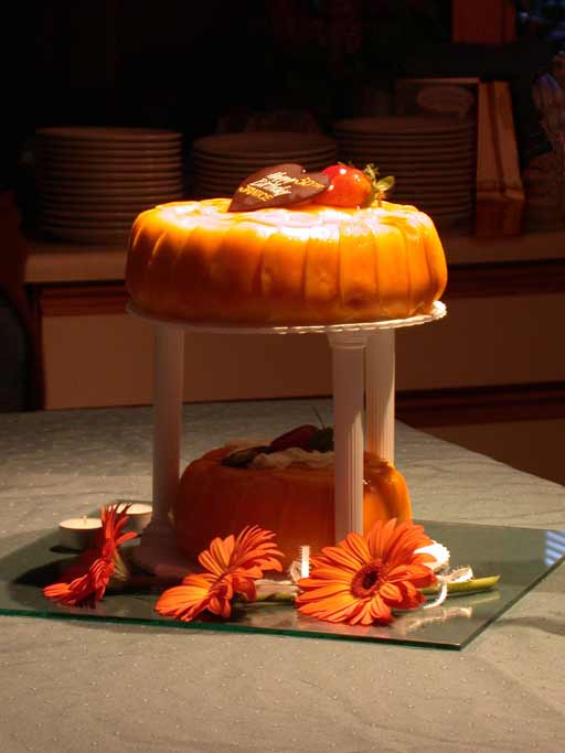 My friend Jan (wife of my good buddy Art) had her demi-centenary party in June, and invited me over to partake and photograph. It was such a lovely time that I mostly forgot about photography. Later in the evening, though, I did catch this cake lying in wait for her. That's mango around the outside. mmmm. |