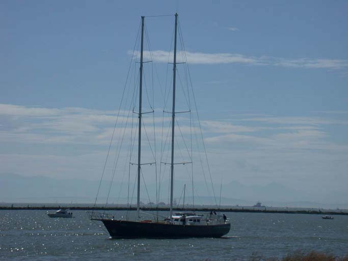 I wasn't able to identify this craft. Looks to be a yawl. She never showed any sail...maybe those are radio towers, not masts.