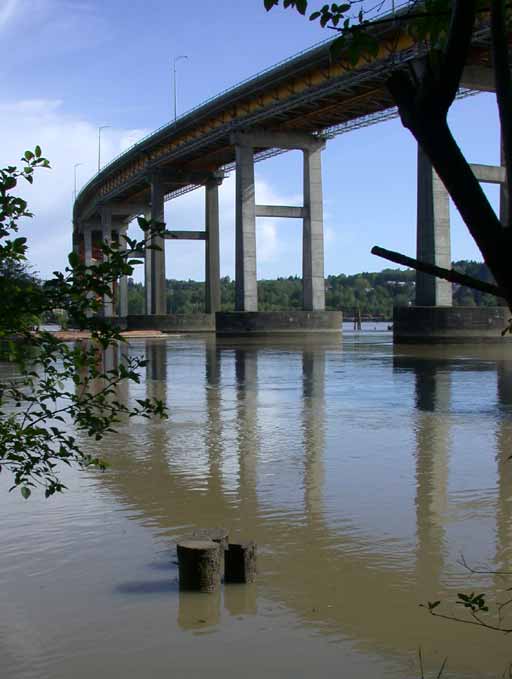 The Port Mann bridge, seen from the east of the bridge on the north shore.