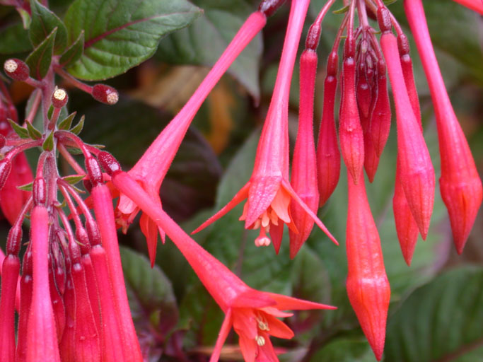I have it on good authority (my friend Gaile said so) that this is a fuchsia that goes by the name of Gartenmeister Bonstedt.