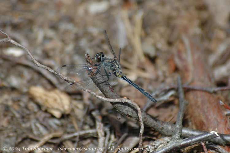 of dragonfly activity. Here's a blue-bodied dragonfly from beside