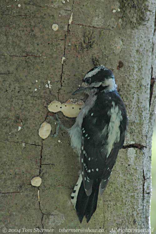 it through the canopy. He was a Downy Woodpecker, one of the small