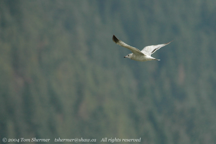 A young gull flew past.