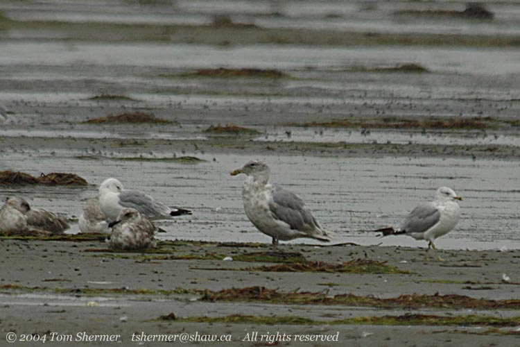 Gull on the right only comes up to the Herring's shoulder. Ring-billed