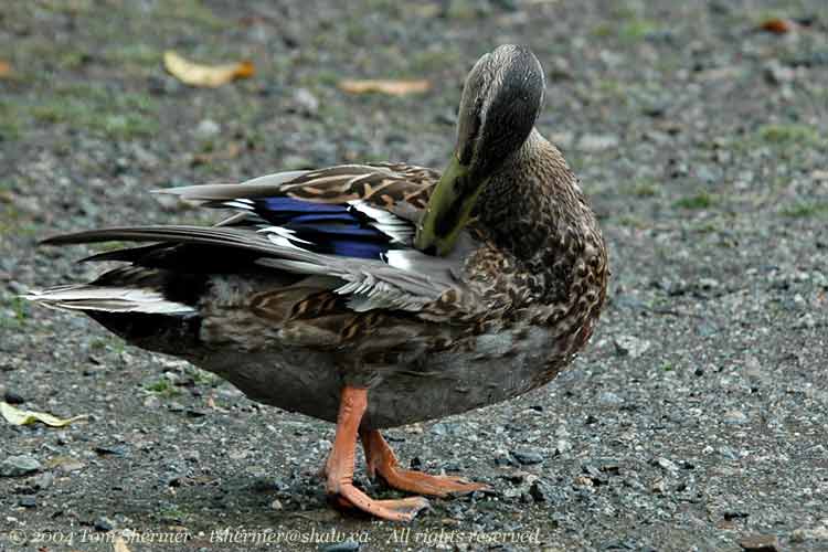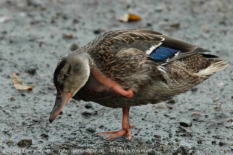 Here's a Mallard that has an itch that she's just gotta scratch.