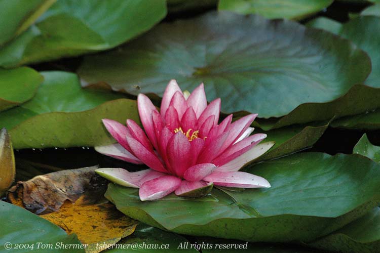 closeup on one of the waterlilies (genus Nymphaea). They have some