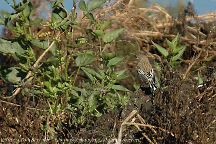 empty (dry) southeast pond, there were a few Yellow-rumped Warblers