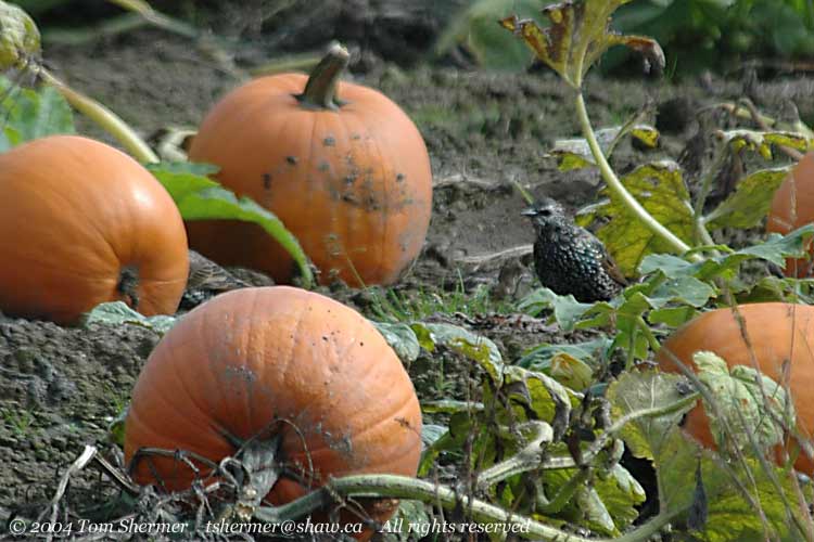 field I noticed quite a number of birds poking around between pumpkins.Here's