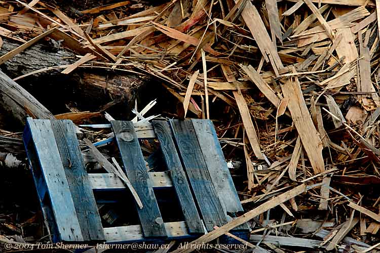 north from the wood strips, there was a pile of wood chips that