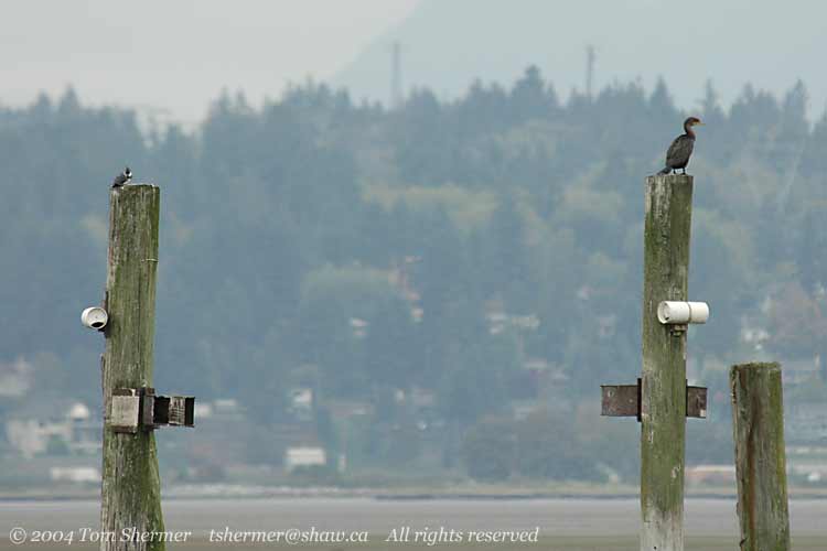 saw a Belted Kingfisher and a Double-crested Cormorant standing