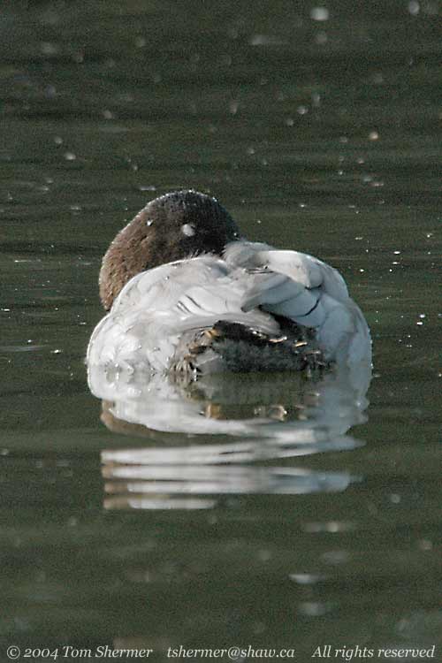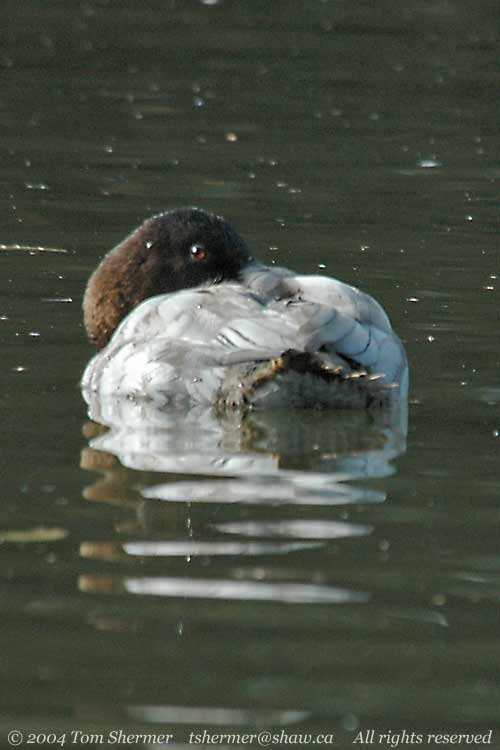 male Canvasbacks out on the pond--those of the evil red eyes.