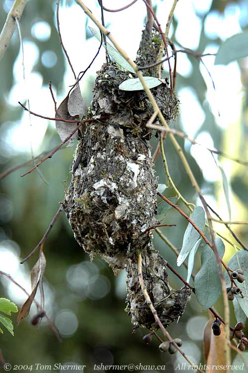 I found out that this is a Bushtit nest. I hadn't seen any bushtits