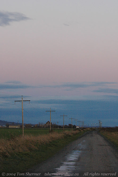 a few minutes' walk, I looked up at the utility poles by the dyke--the