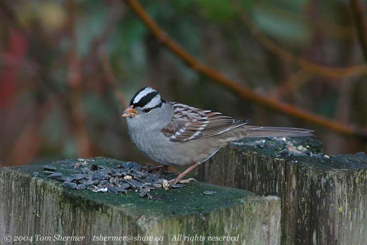 feeder and took photos of the White-crowned, Golden-crowned, and