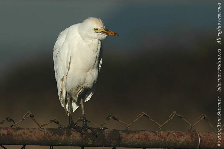 found that the odd bird was a Cattle Egret. The farmer was friendly
