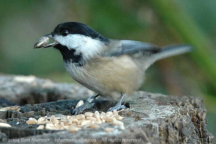 few Black-capped Chickadees were stopping by to pick up goodies.