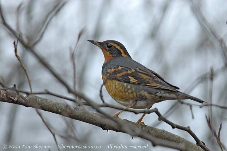 It was a Varied Thrush. Here he's posing on a tree branch for