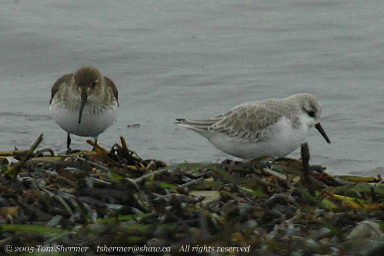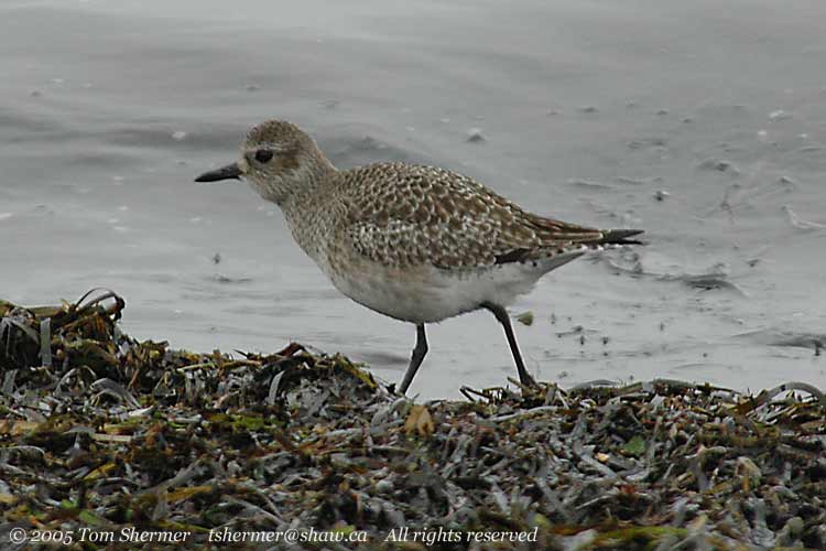 Black-bellied Plovers, two Sanderlings, and a Kildeer.