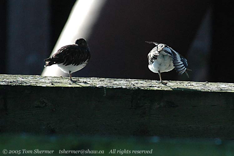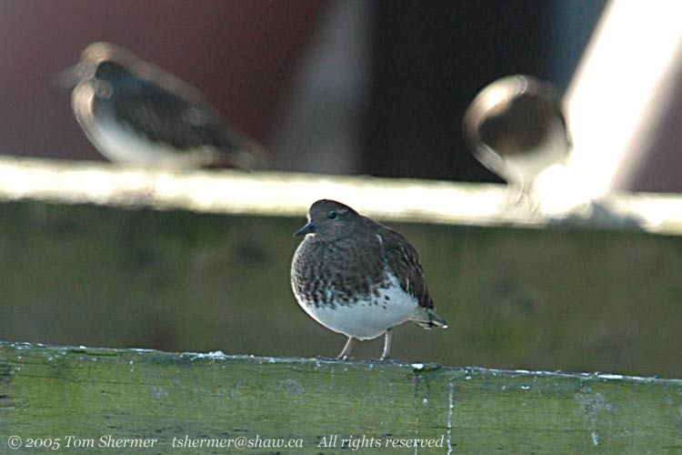 a Black Turnstone in the middle of the picture, and a Surfbird