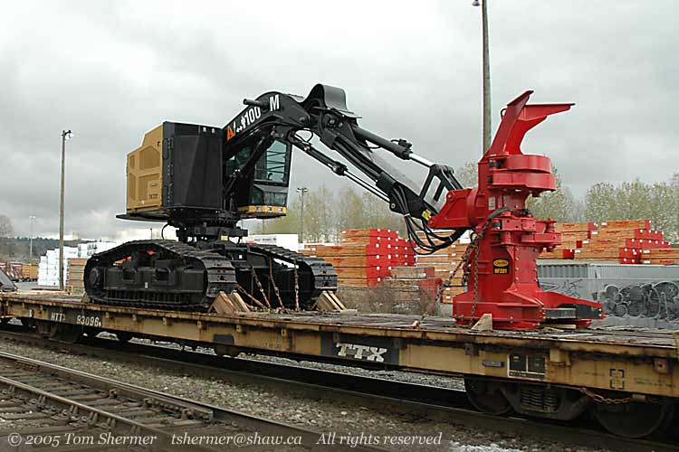 a log grapple attached to the business end.