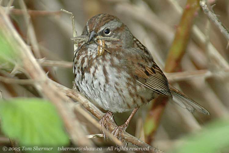 near a trail intersection, I found a Song Sparrow who had found