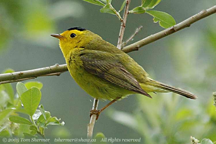of my yellow friends, a Wilson's Warbler, with his yarmulke clearly