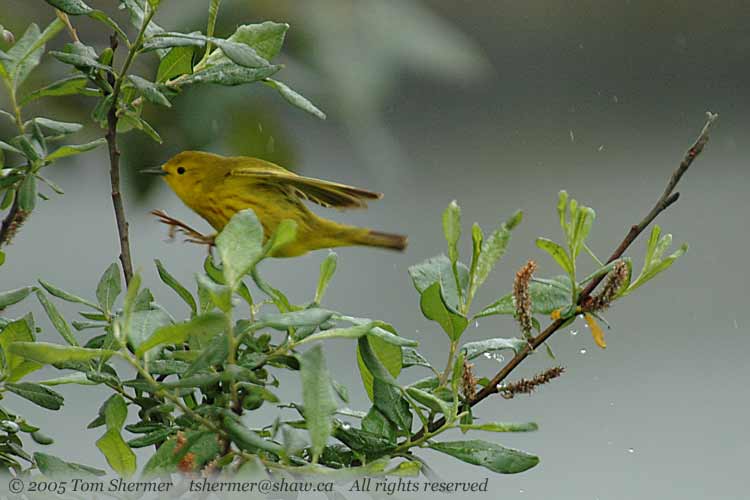 Yellow Warblers, like this guy I caught taking off.