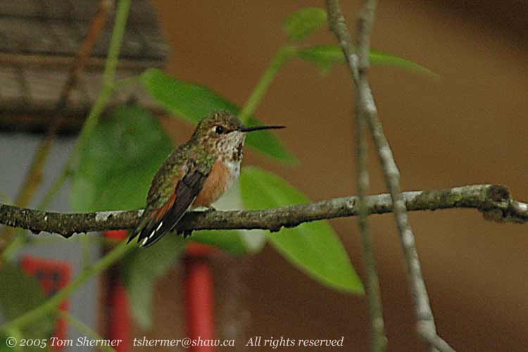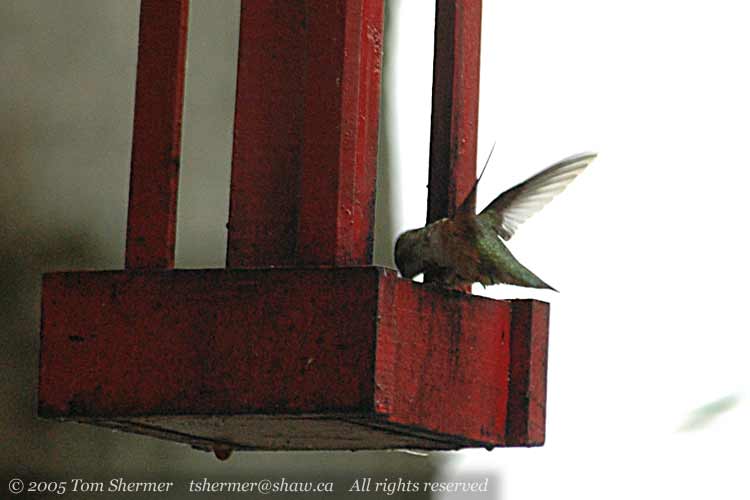 a female Rufous Hummingbird had come by to visit the feeder. Here