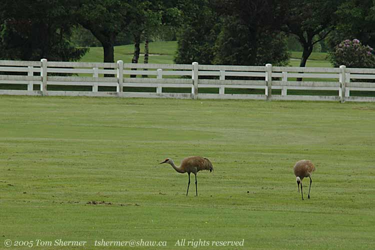 there were a pair of Sandhill Cranes grazing in the front yard.