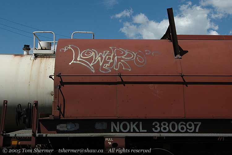scrawled on the side of a coil steel car. Maybe someone whose last