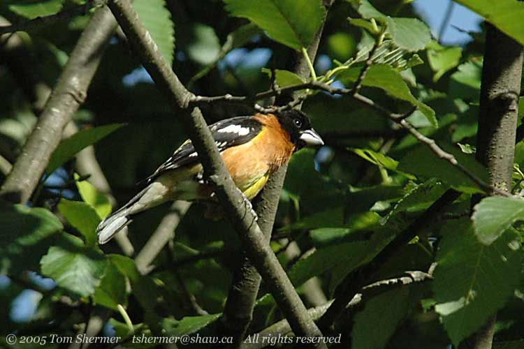 some orange in a tree above me. There was a Black-headed Grosbeak,