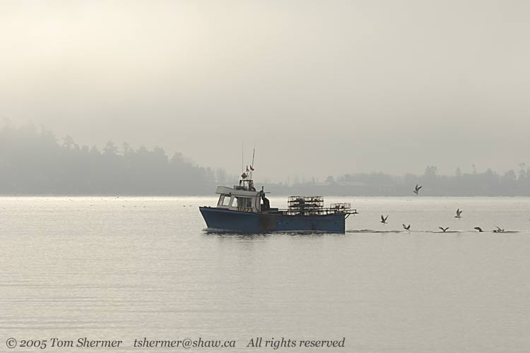 a small flock of gulls. It looked to be a crabbing boat (I think
