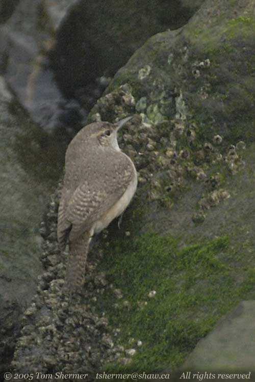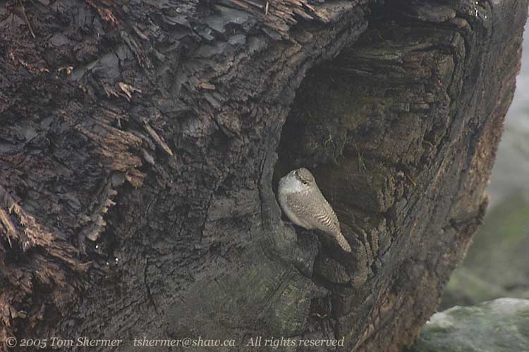 lifer Rock Wren in the hollow of a piece of driftwood. That photo