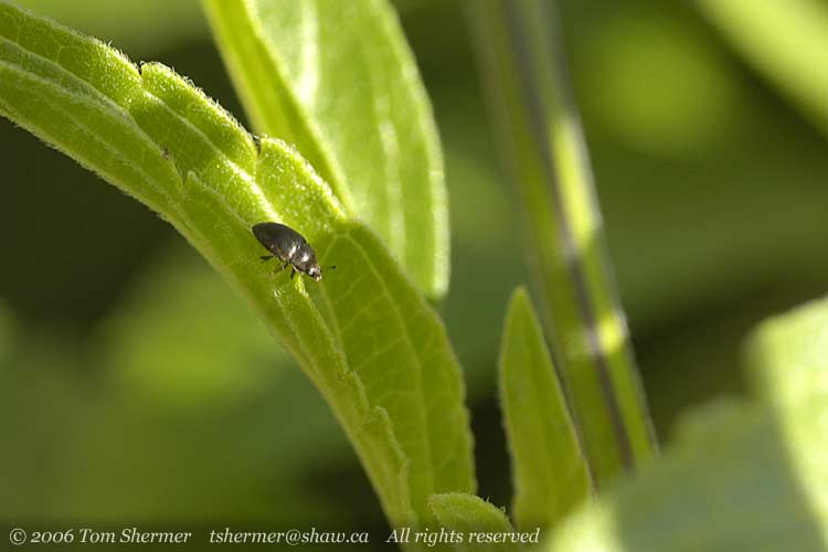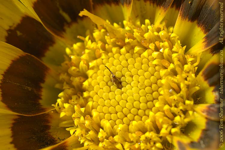7mm long and brown-and-yellow striped, a bit reminiscent of a bee.