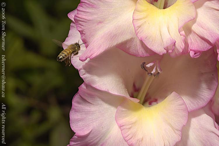 and with the flash I was able to catch a Honeybee heading in towards