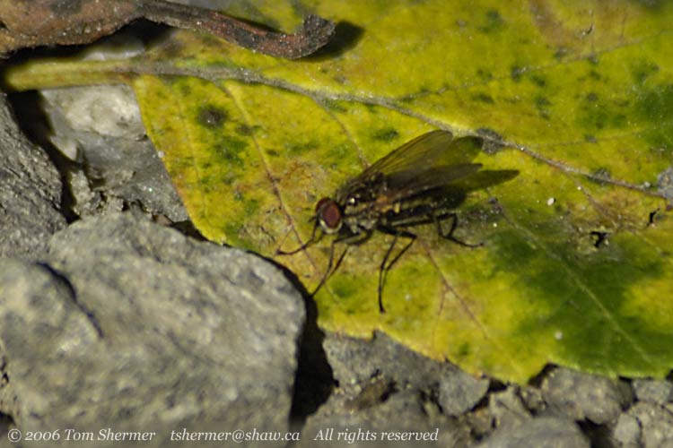 a red-eyed fly on an interestingly-colored fallen leaf. I took
