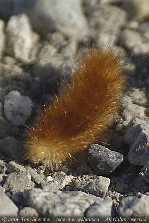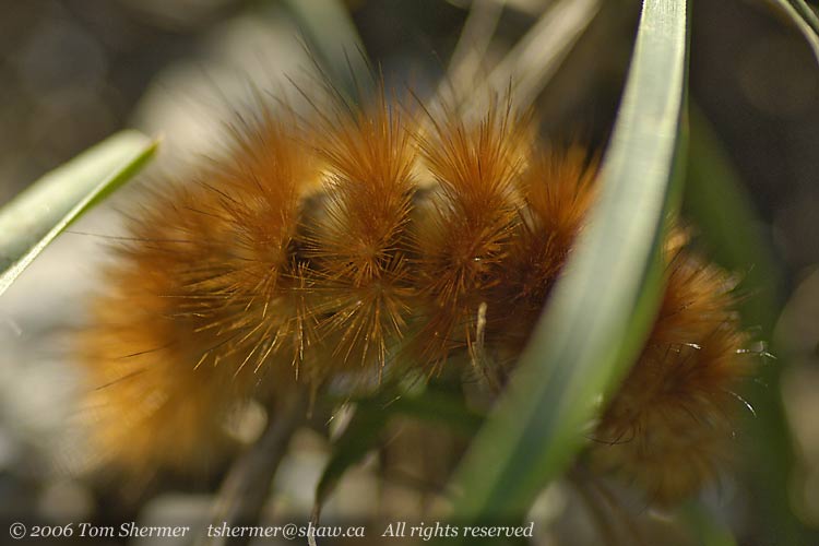 the open, sunlit part of the trail, I found a few hairy orange caterpillars