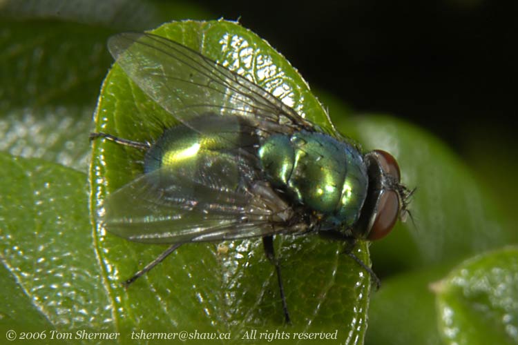 bush, I found a Green Bottle Fly (genus Lucilia). The big