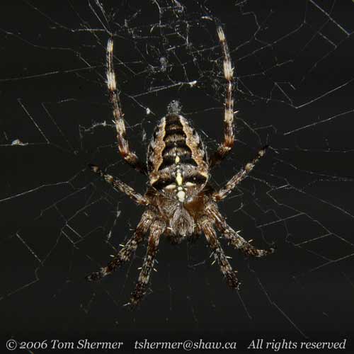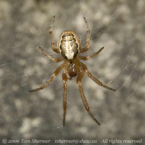 one of our Garden Spiders, on a web built on the side of a lamppost.