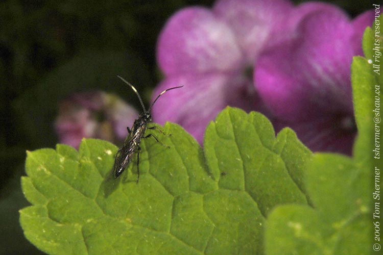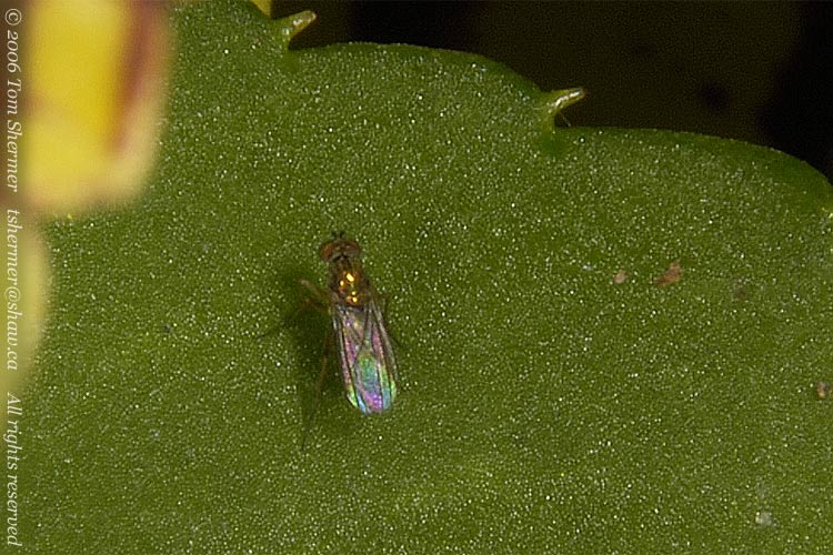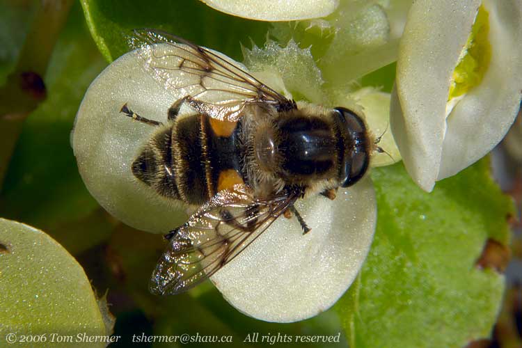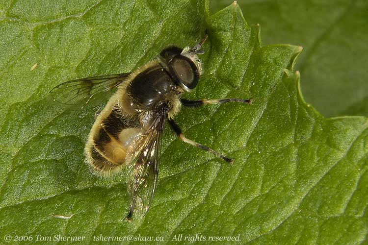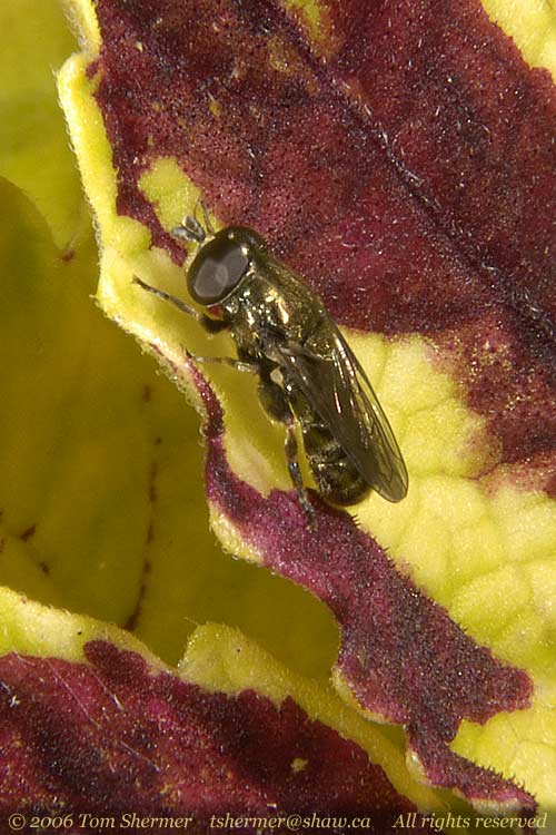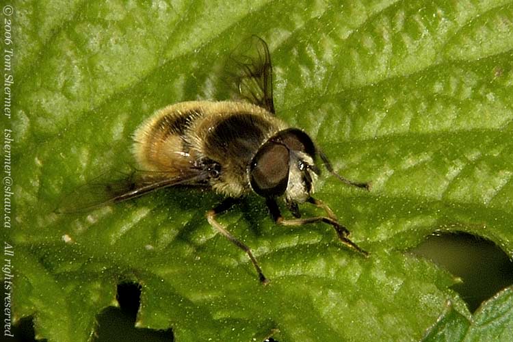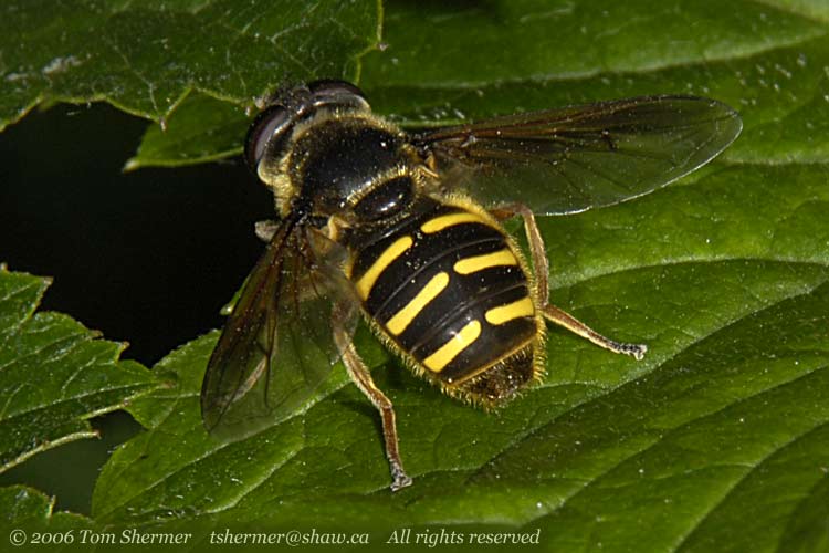 a hover fly, on a plant in the shadows under a bush. I moved my