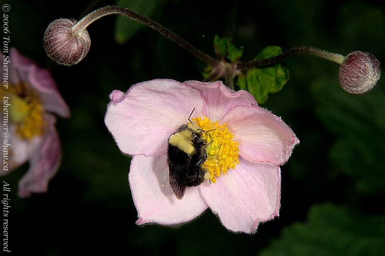 buds with their visitor, a Yellow-faced Bumble Bee.