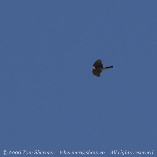 Hawk flying by in the distance. I see lots of Kestrels in my travels,