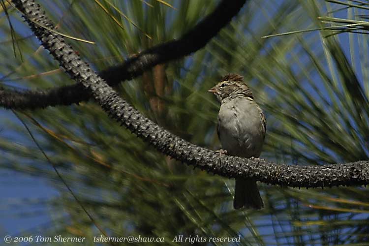 sort hanging around in the trees. This fellow was a Chipping Sparrow. |