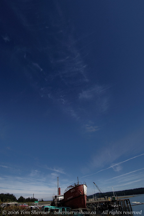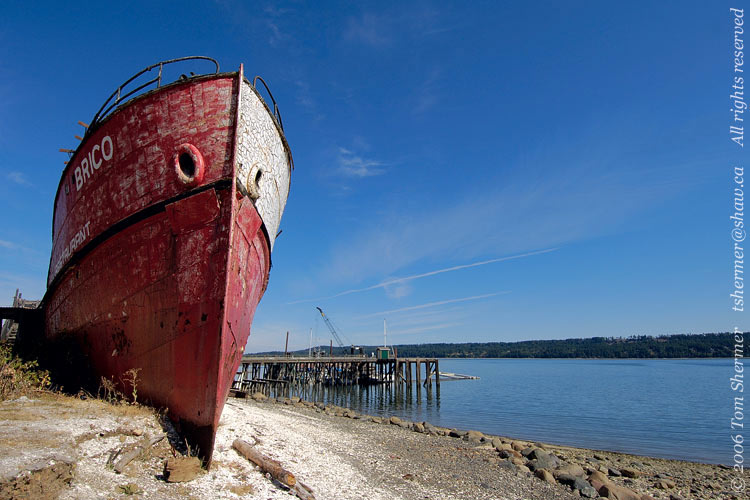 I found a sign that informed me that I was at a place called Fanny Bay. I walked out on a pier but found no good photos there. It was a nice day, though, so I sat down on the part of my anatomy that seemed appropriate to the place to enjoy the sights and sounds and smells.