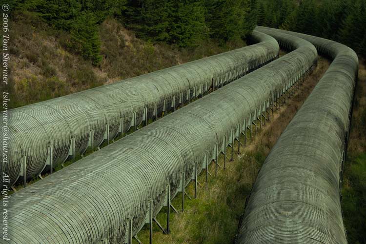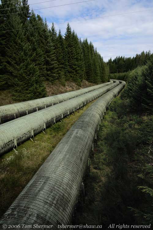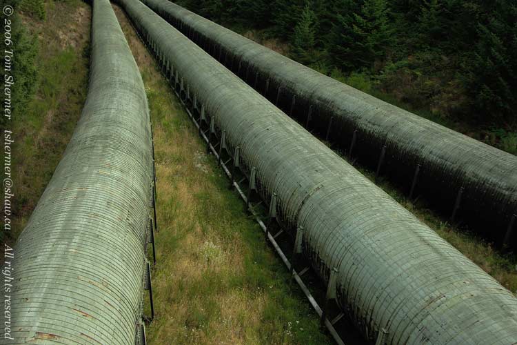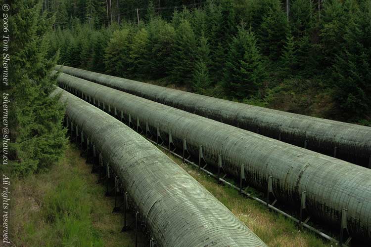 These pipes take water from the John Hart Lake (about 40 meters to one side of the bridge) down to the power generating station that I had encountered earlier. |