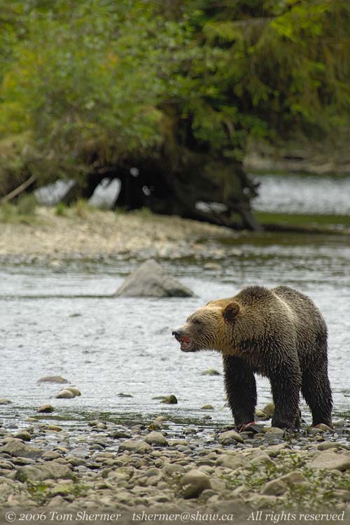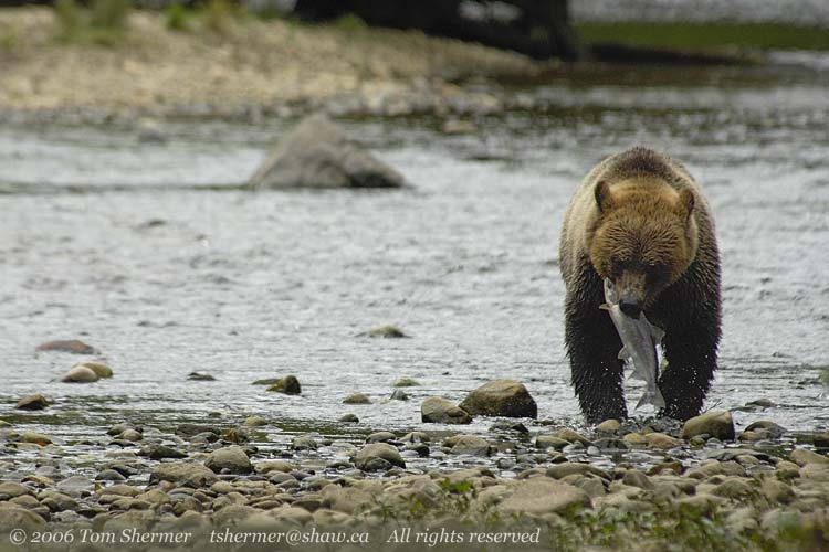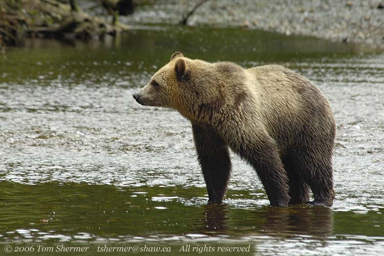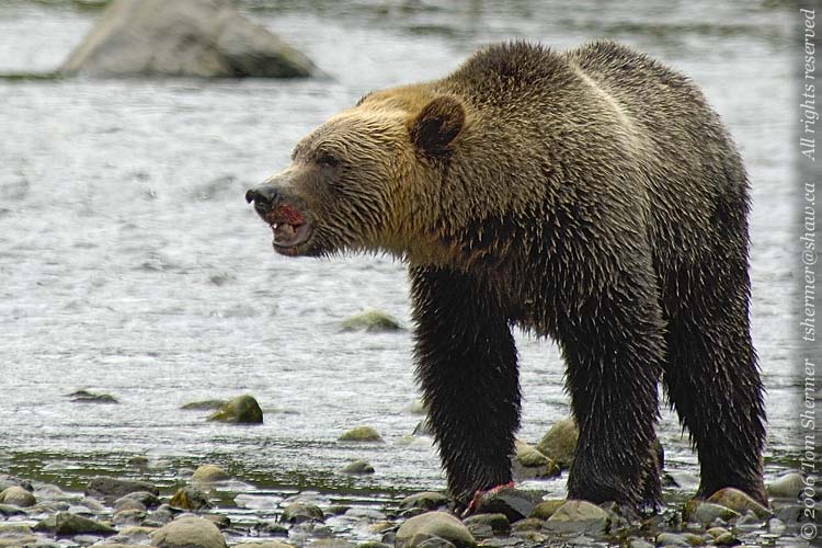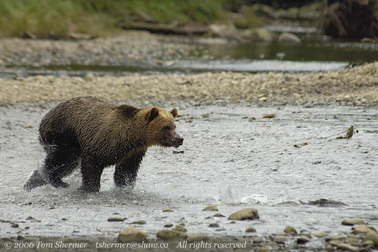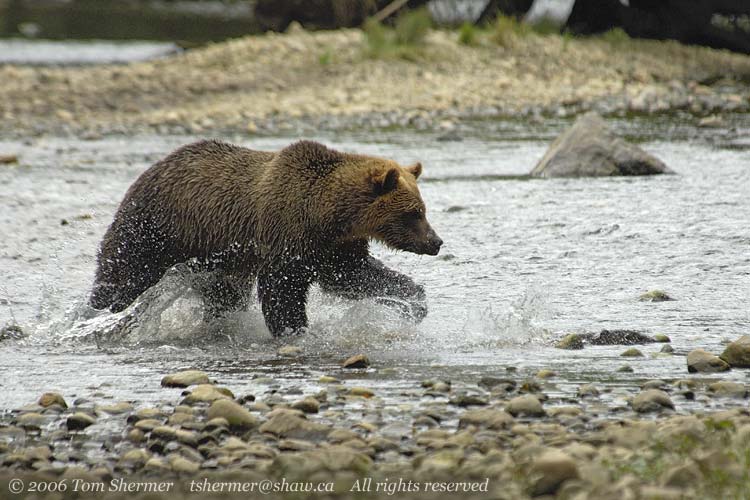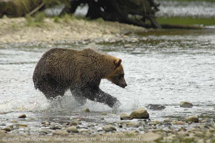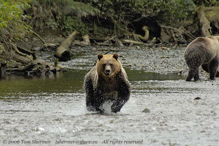 Well, lucky for me (and even luckier for the guide in the water), the bear pulled up. Seems he wasn't really charging us, but rather running over to investigate something in the water. |