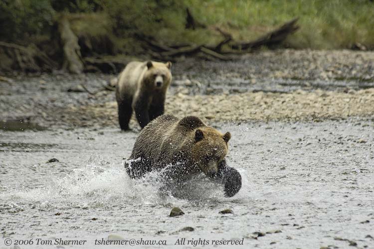 The bear had shown some impressive quickness to get up to where the fish was. His companion just stood and watched from the sidelines.