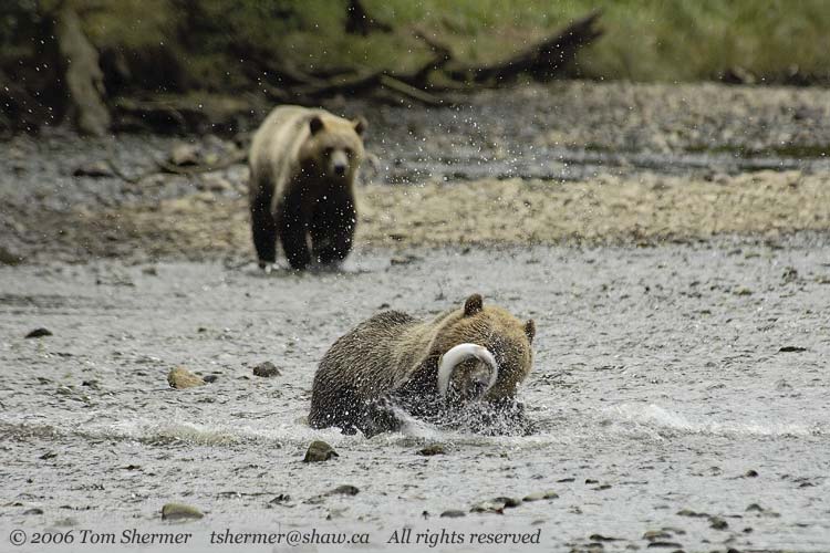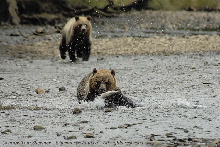 The bears headed further upstream, and my guide explained that these two are siblings, and that they're about three years old (if I remember correctly).